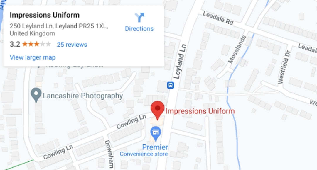 leyland@impressionsuniform.co.ukTemporary Opening hours