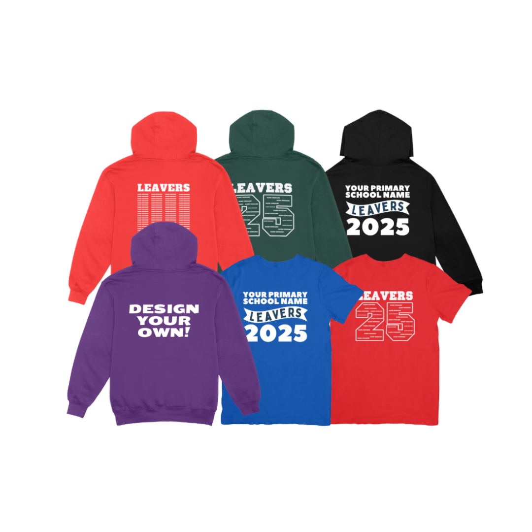 Whether your child is part of a class 3, 30 or 300 don’t worry – we’ve got you covered. To get your Leavers Hoody process started enquire below!