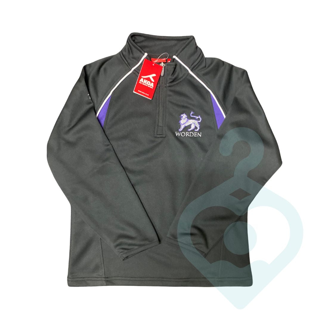 Black and Puple pannelled Quater Zip for Worden Academy.