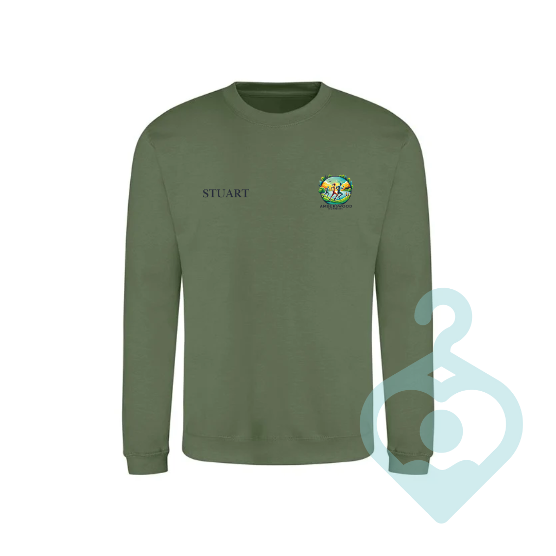 Layer up with this earthy green Amberswood runners sweatshirt. This item features a printed logo to the left chest and the option for a name/initials.