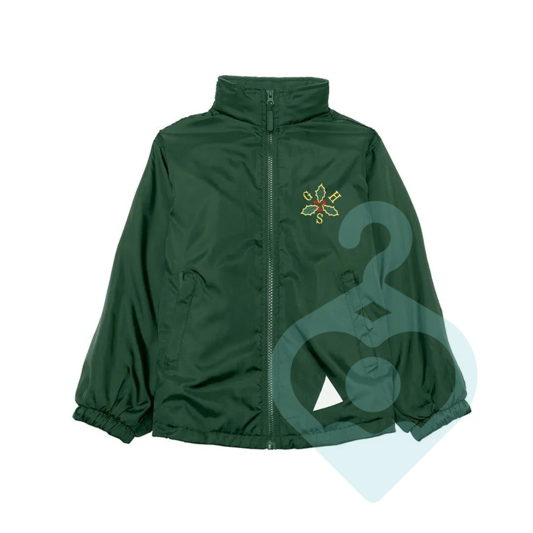 This garment has an embroidered school logo.
