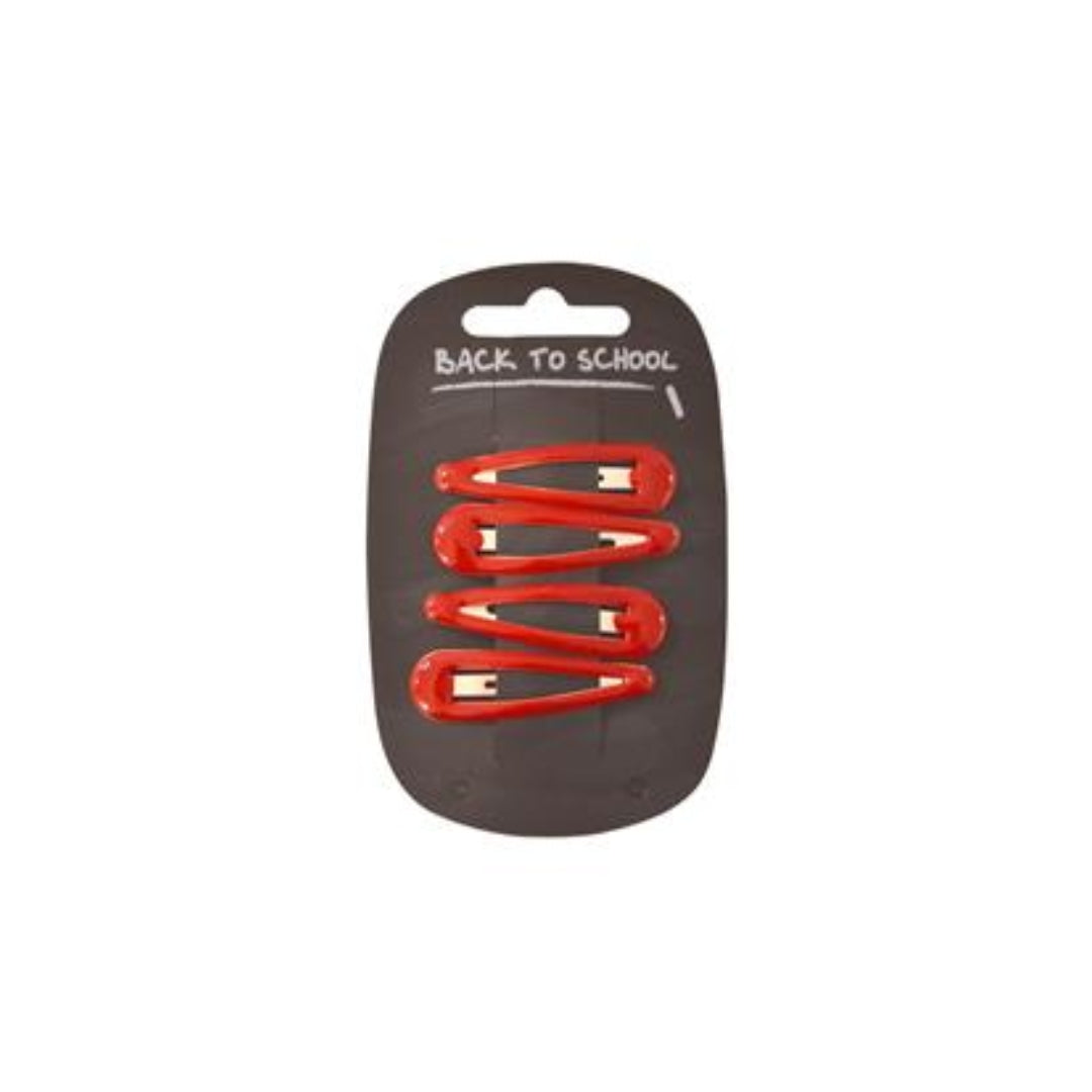 Snap fastening hair grips with colourful enamel finish. Four to a card