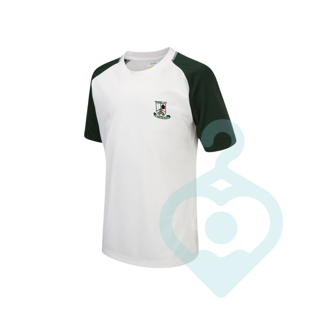 PE T-Shirt in green and white for Leyland St James Primary School.