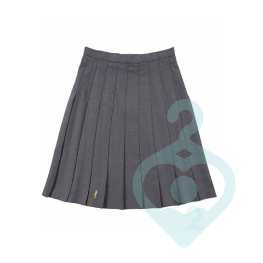 A Grey Knife Pleat Skirt with Lowton High badge embroidered