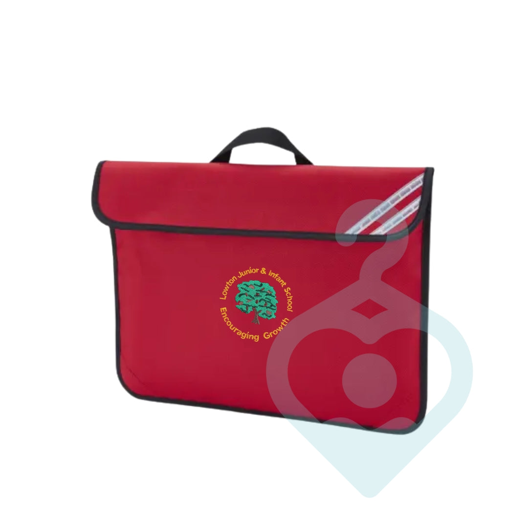 Red Bookbag for Lowton Junior and Infant with an embroidered logo to the front.