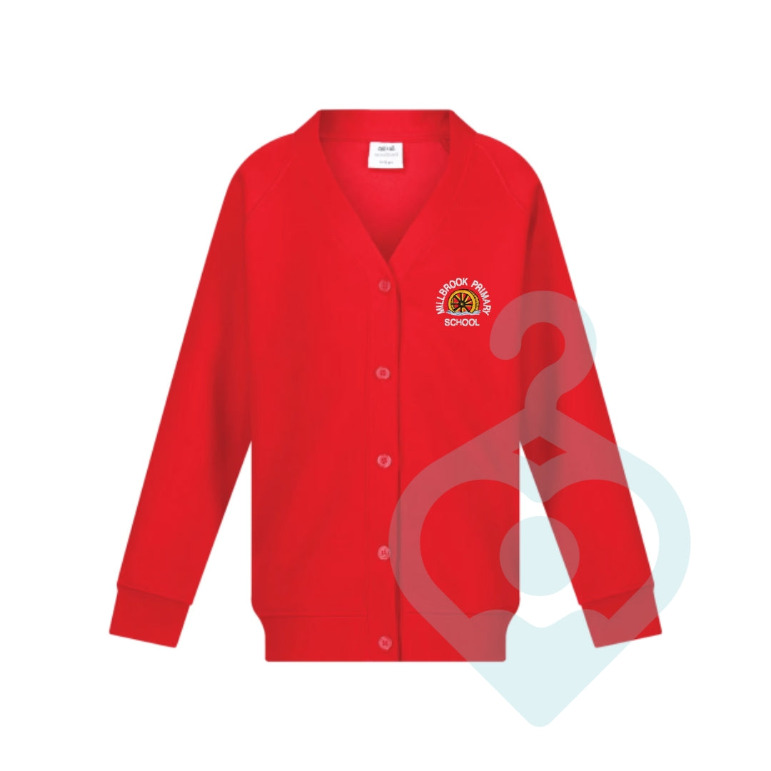 Red cardigan for Millbrook Primary School.