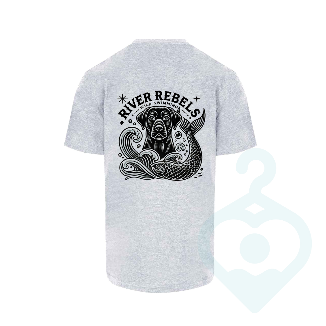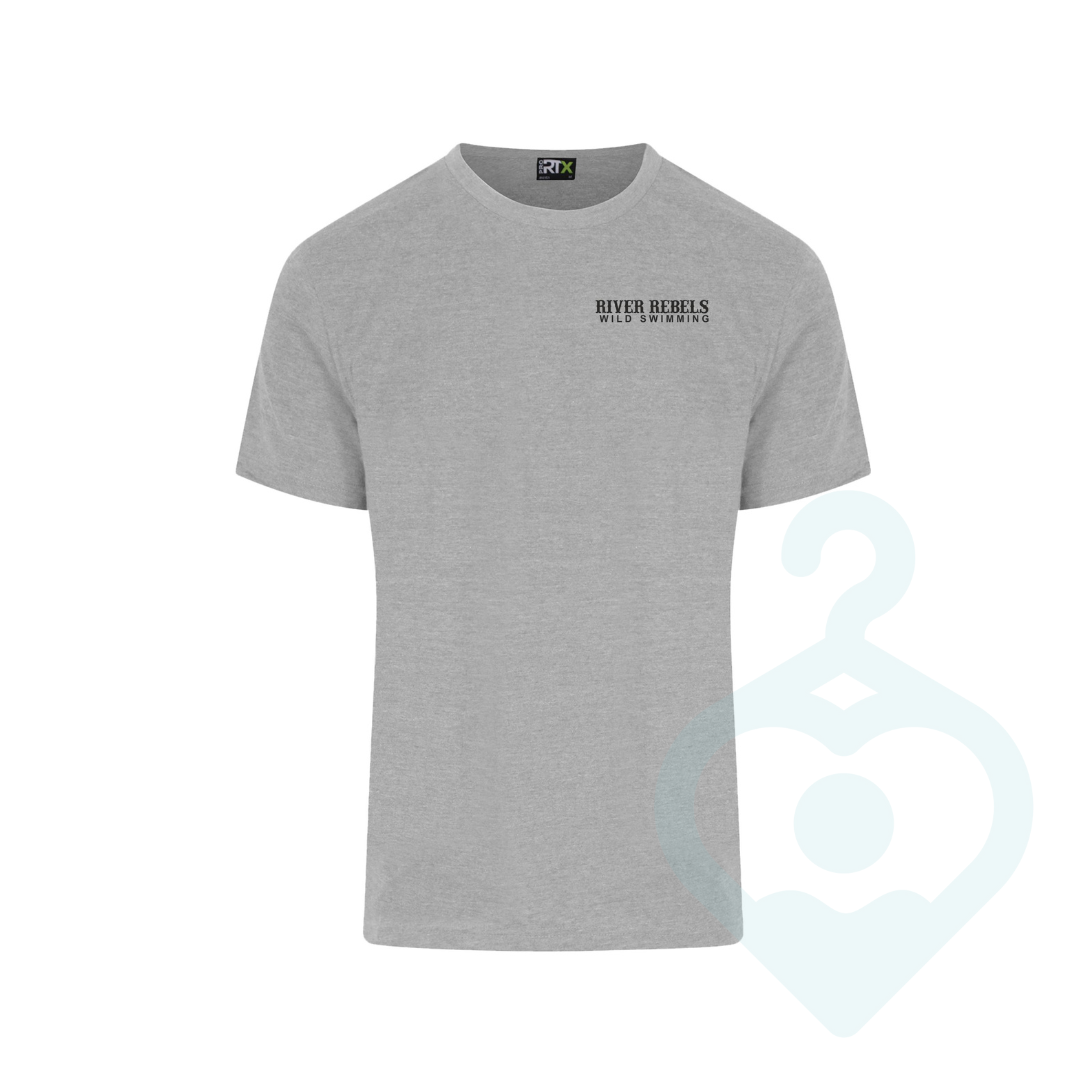 Heather grey T-Shirt for River Rebels with a front left chest and large rear print.