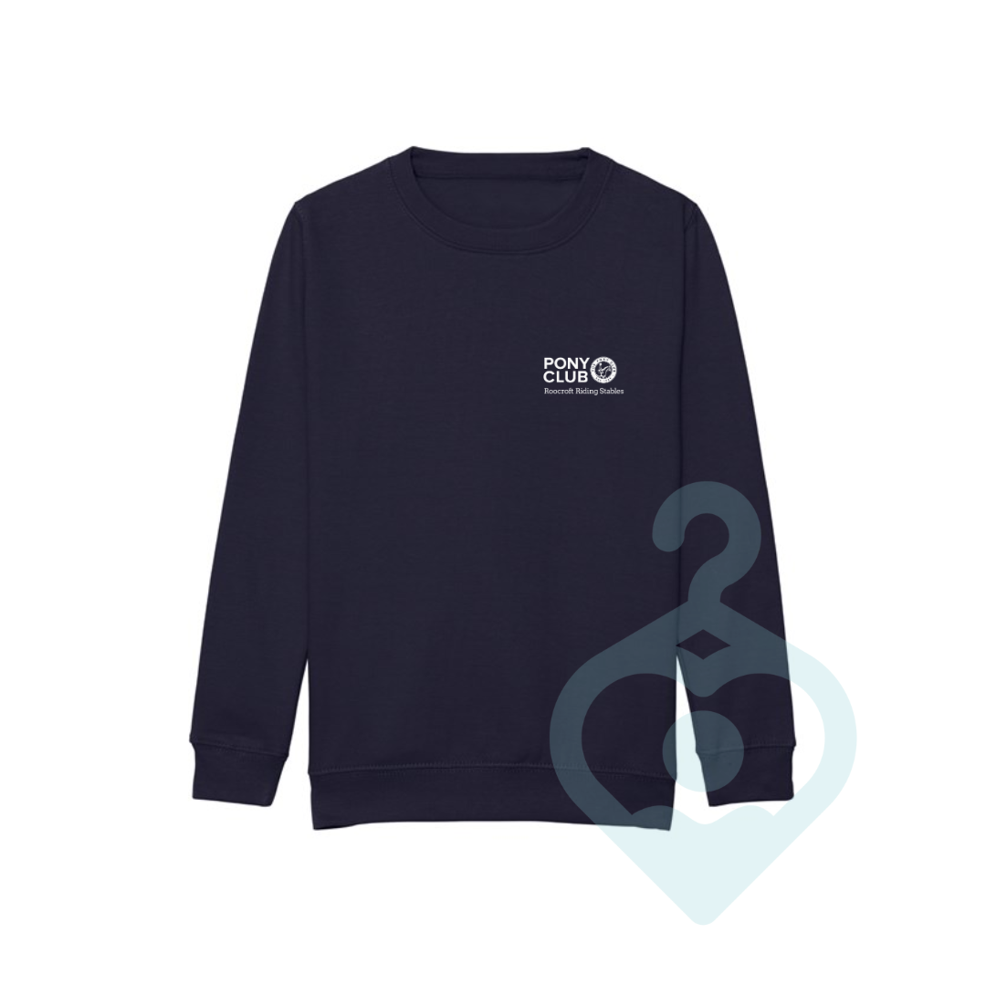 Navy sweat with a front printed chest logo for Roocroft Pony Club.
