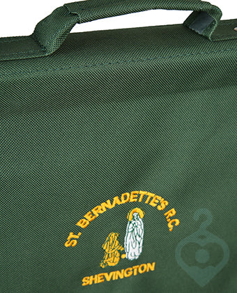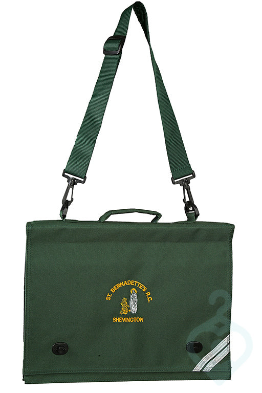 Bottle Green Document bag for St Bernadette's with an embroidered logo to the front and a carry strap.