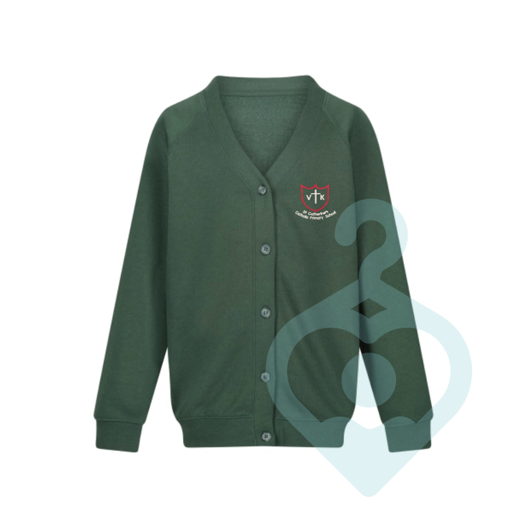 A cardigan for St Catherine's Leyland with an embroidered logo.