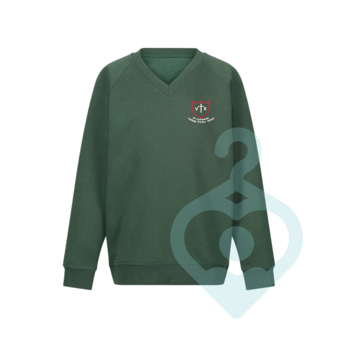 A V-Neck Sweatshirt for St Catherine's Leyland with an embroidered logo.
