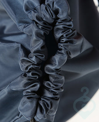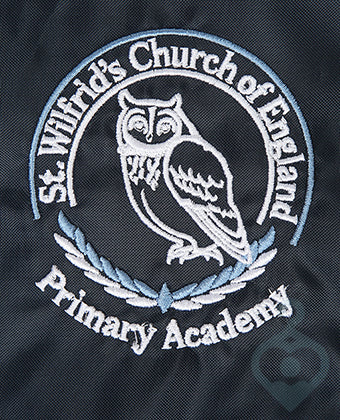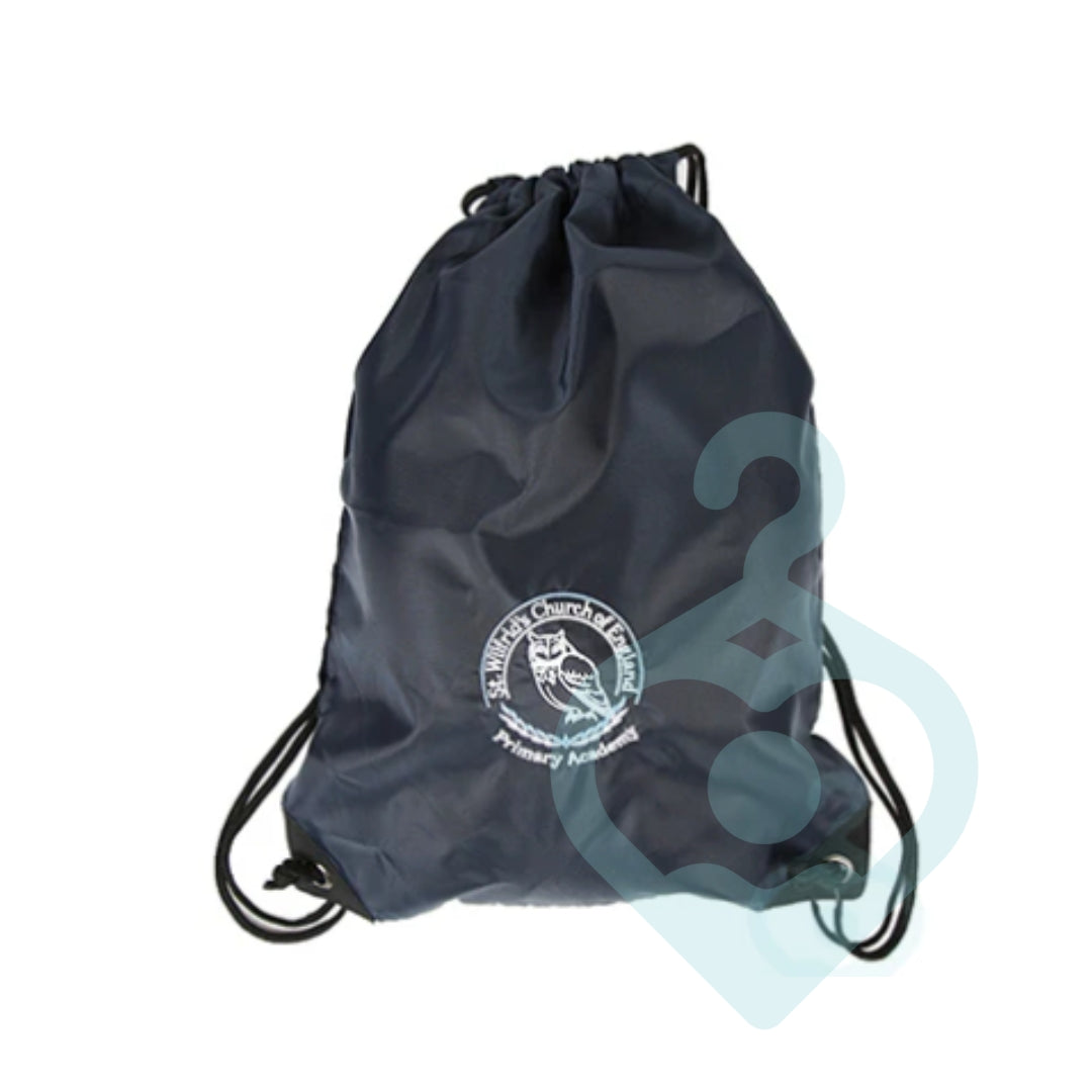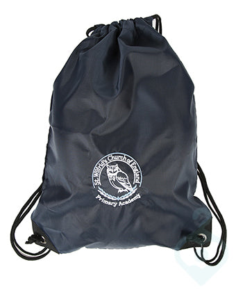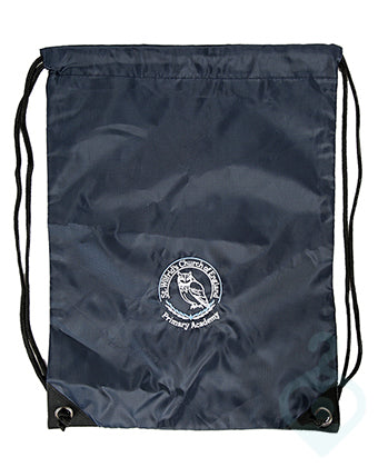 Navy PE Bag with an embroidered logo to the front with black drawstrings.