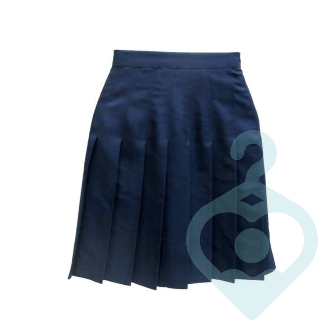 Navy blue knife pleat skirts available in a range of waist sizes and 3 different lengths.
